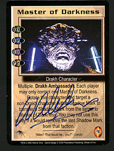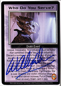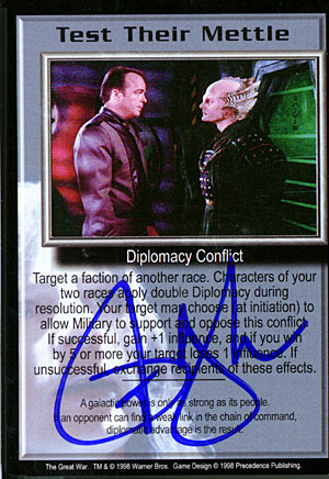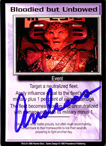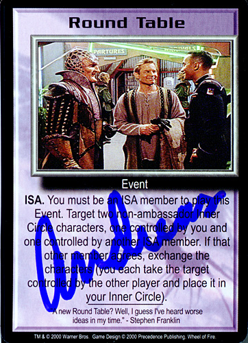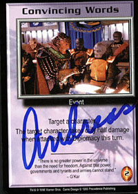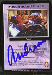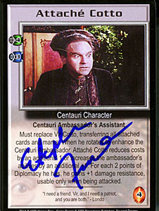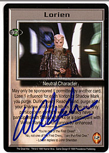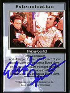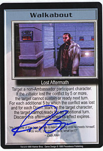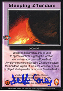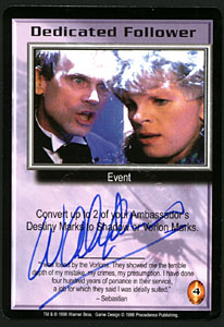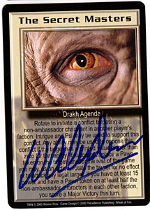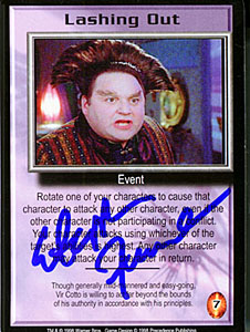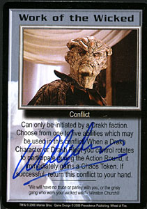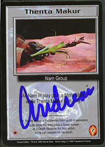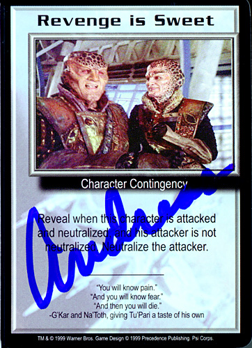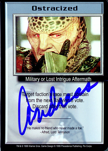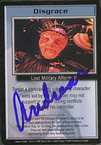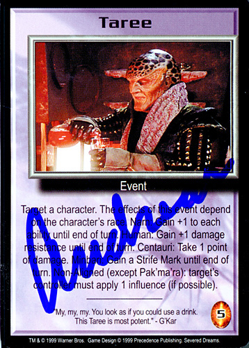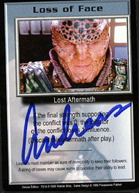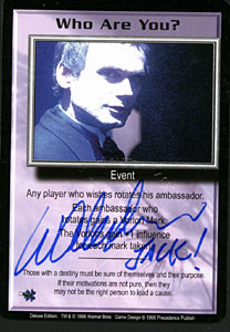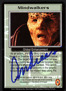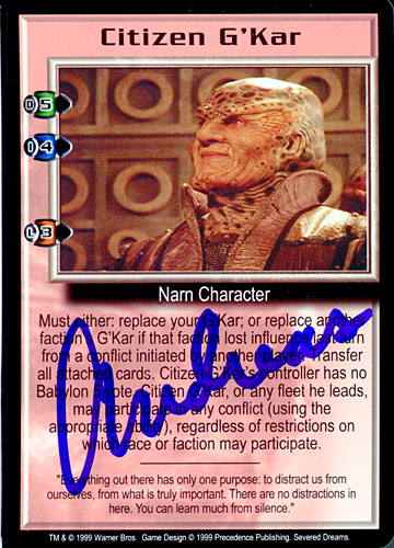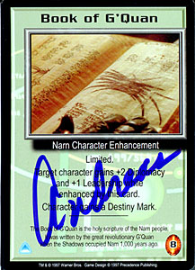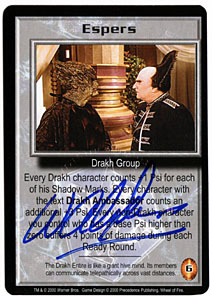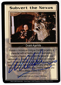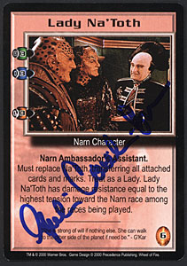 #JC512 Rare Babylon 5 "Justin" Z'ha'dum Card Signed in blue ink. $75.00 embossed Order